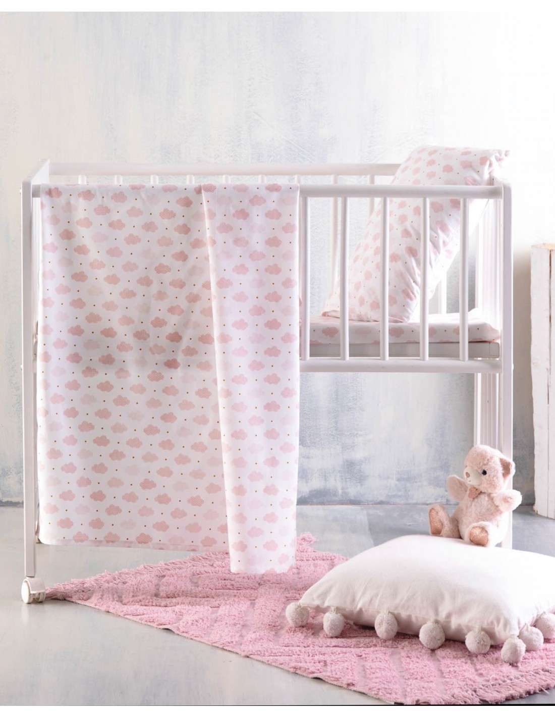 Σετ Σεντόνια Κούνιας 3 Τεμαχίων Rythmos Cloudy Σομόν 120x160