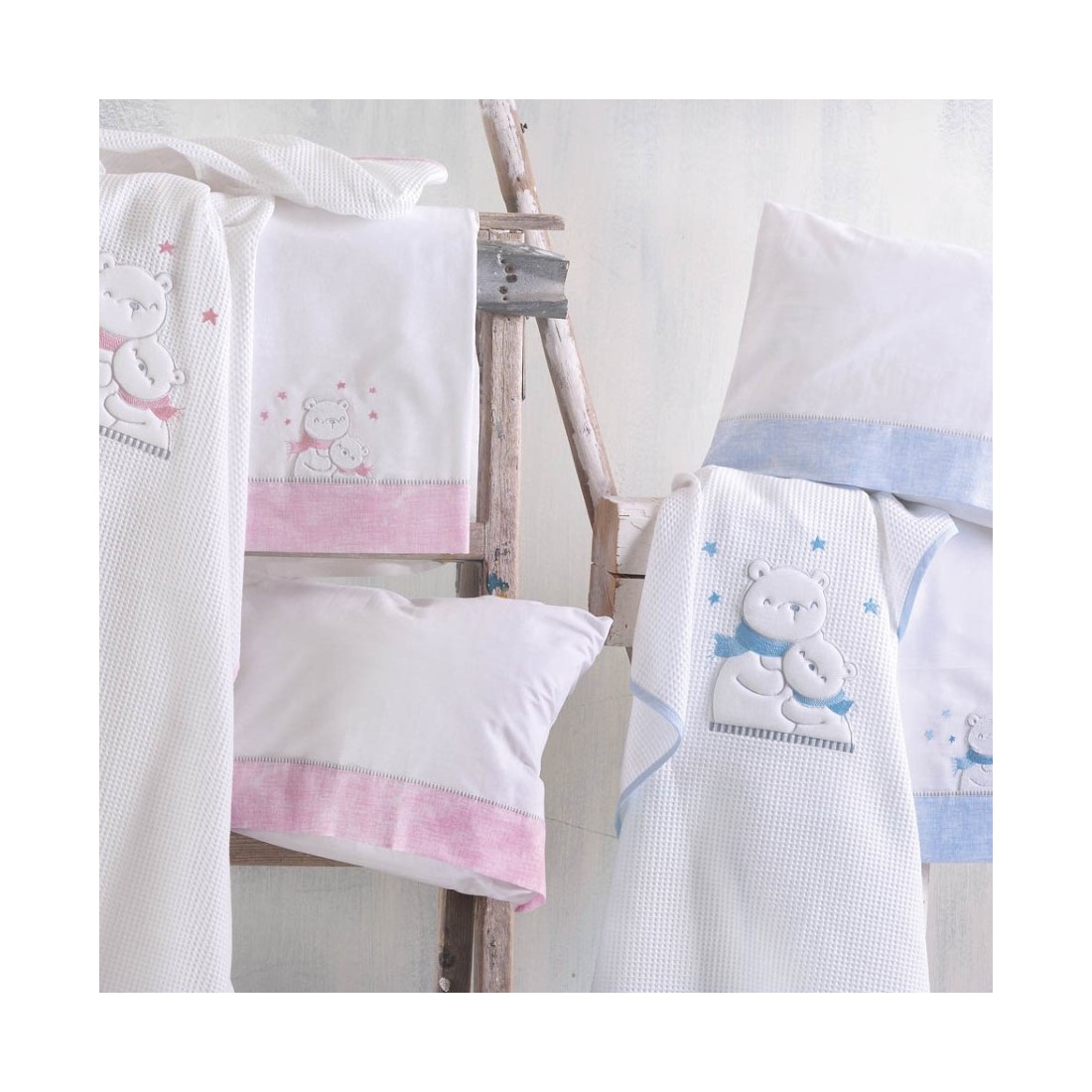 Σετ Σεντόνια Κούνιας 3 Τεμαχίων Rythmos Snowball Ροζ 100x160
