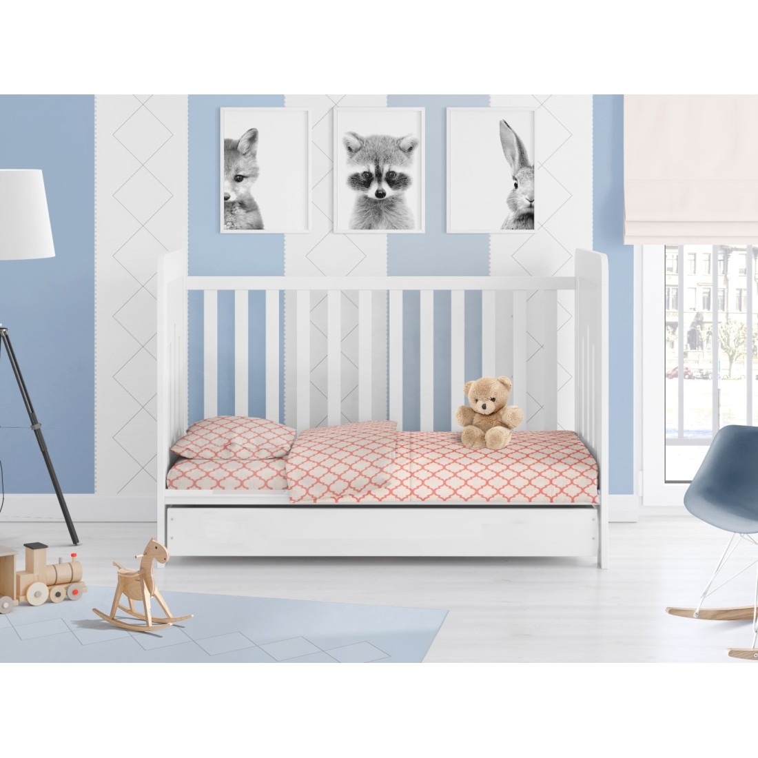 Σετ Σεντόνια 3 τεμαχίων που περιέχει: Βρεφικά Σεντονάκια 120Χ160 κούνιας 2 τεμ. Και 1 τεμ Μαξιλαροθηκη 35Χ45.-Κατασκευασμένα από απαλό ύφασμα βαμβακερό 100 %, 144 Κλωστών, σε χαρούμενα χρώματα με βρεφικές και μοντέρνες παραστάσεις για τη κούνια του μωρού σας.-Συσκευασία Δώρου Κουτί Πολυτελείας