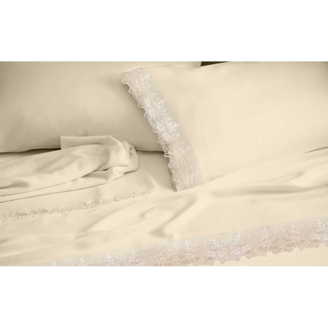 Σετ σεντόνια βαμβακοσατεν υπέρδιπλα Lace Εκρού Makis Tselios 240x260, από 100% ύφασμα βαμβακοσατεν.
