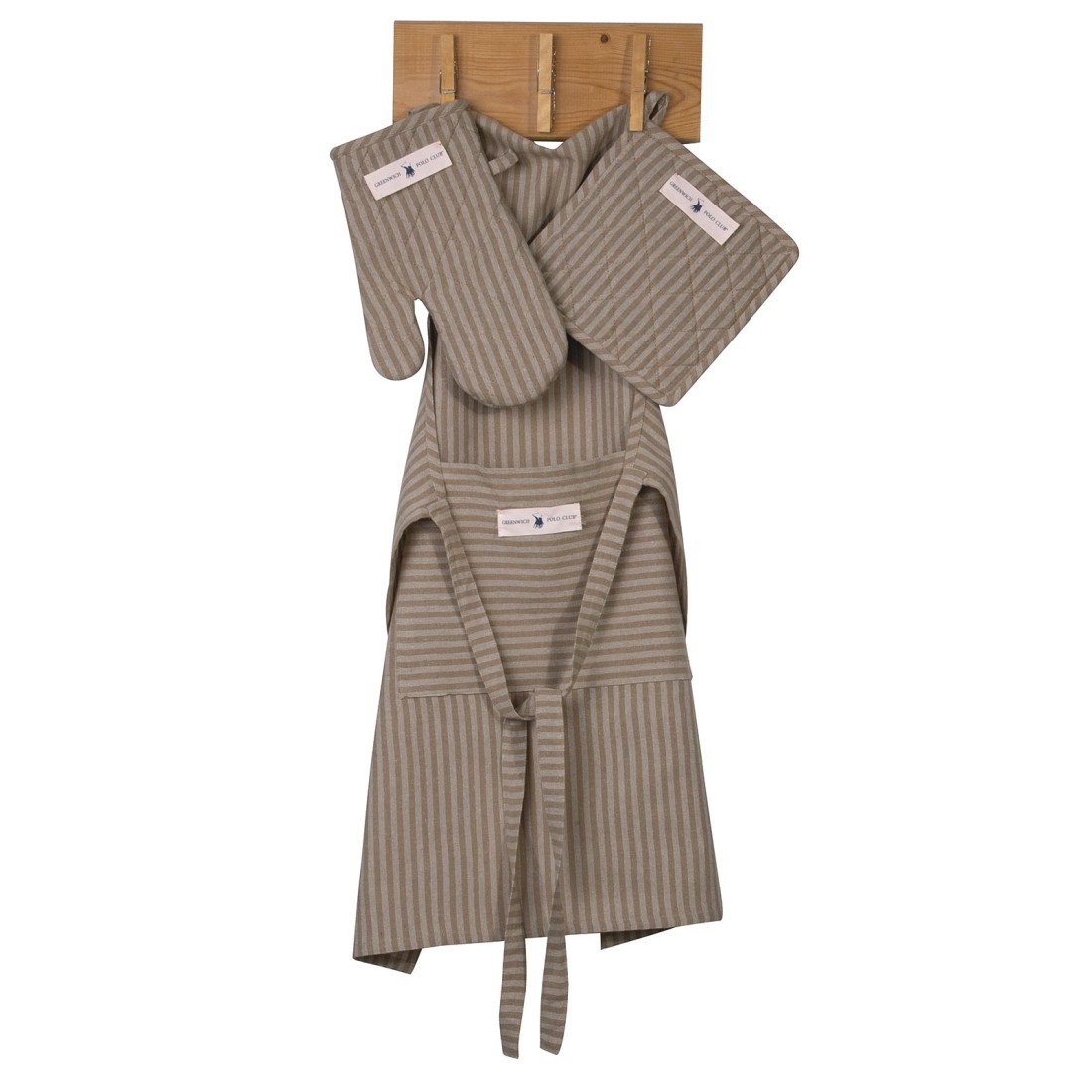 Σετ κουζίνας 3 τεμαχίων Greenwich Polo Club. Το σετ της σειράς kitchen essential είναι από 100% βαμβάκι και αποτελείται από μία ποδιά 60x80εκ, ένα γάντι 17x28εκ και μία πιάστρα 20x20εκ.