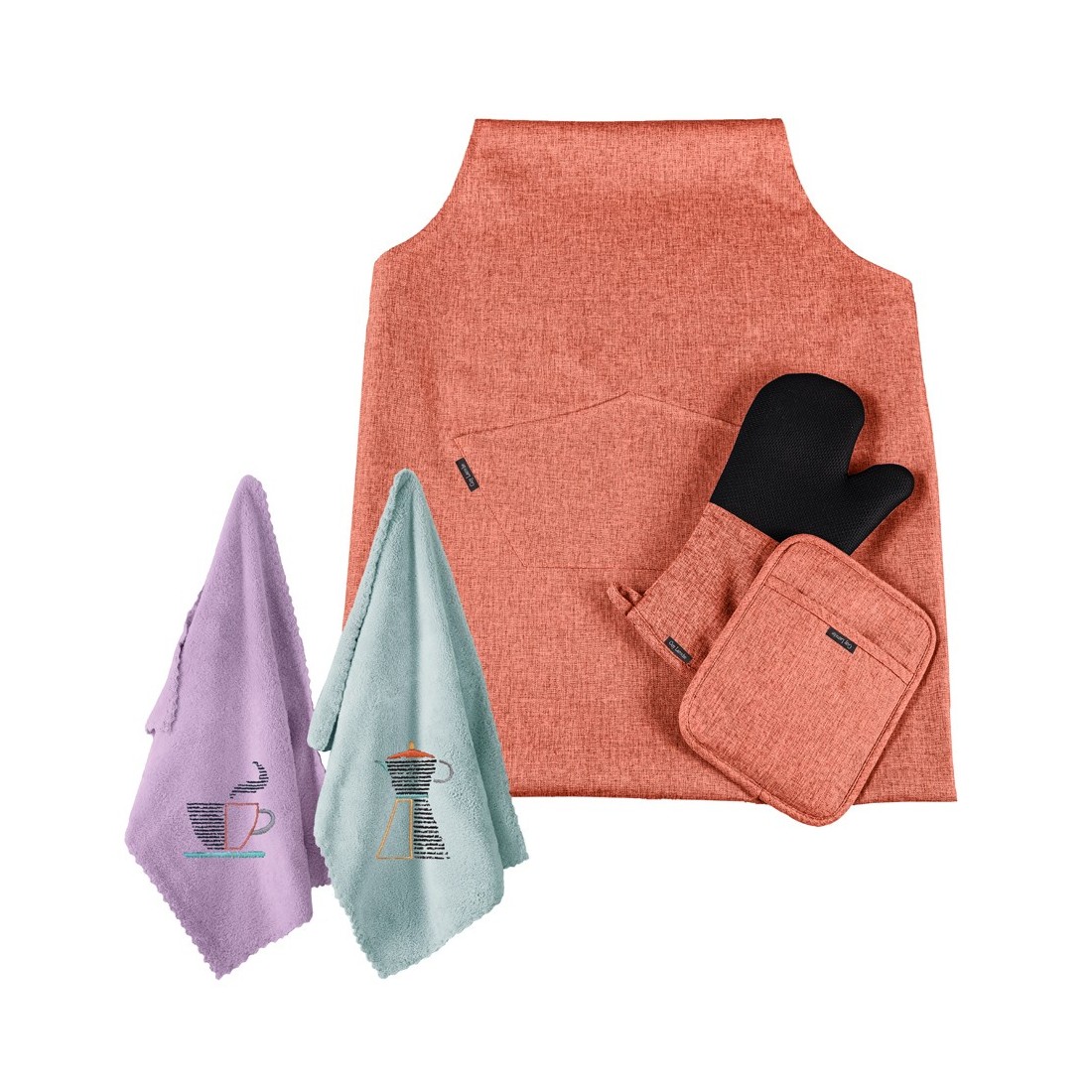 Περιλαμβάνει γάντι κουζίνας, πιάστρα, ποδιά και 2 ποτηρόπανα gourmet
