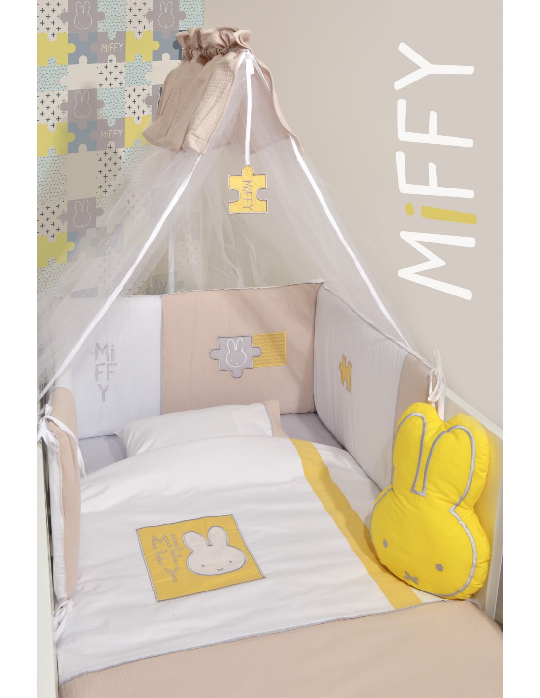 Το σετ περιλαμβάνει πάπλωμα 100x140 με εξωτερικό ύφασμα 100% μικροΐνες και γέμιση 100% σιλικονούχα πολυεστερική βάτα, παπλωματοθήκη 100x140, πάντα 34x210, κουνουπιέρα 180x500, μεταλλικό σίδερο κουνουπιέρας 150cm με 2 στηρίγματα, κατωσέντονο 110x170, μαξιλάρι ύπνου 30x40 για χρήση μετά τους 12 μήνες, μαξιλαροθήκη 30x40 και διακοσμητικό μαξιλάρι 35x25
