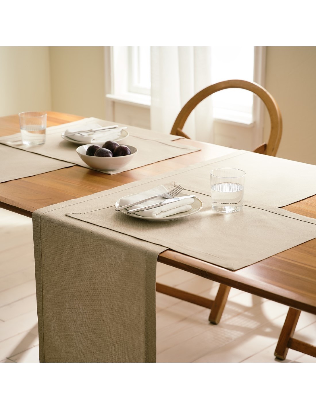 Σουπλά από μαλακό, βαμβακερό ύφασμα στο φυσικό χρώμα του λινού με φάσα 3cm περιμετρικά.