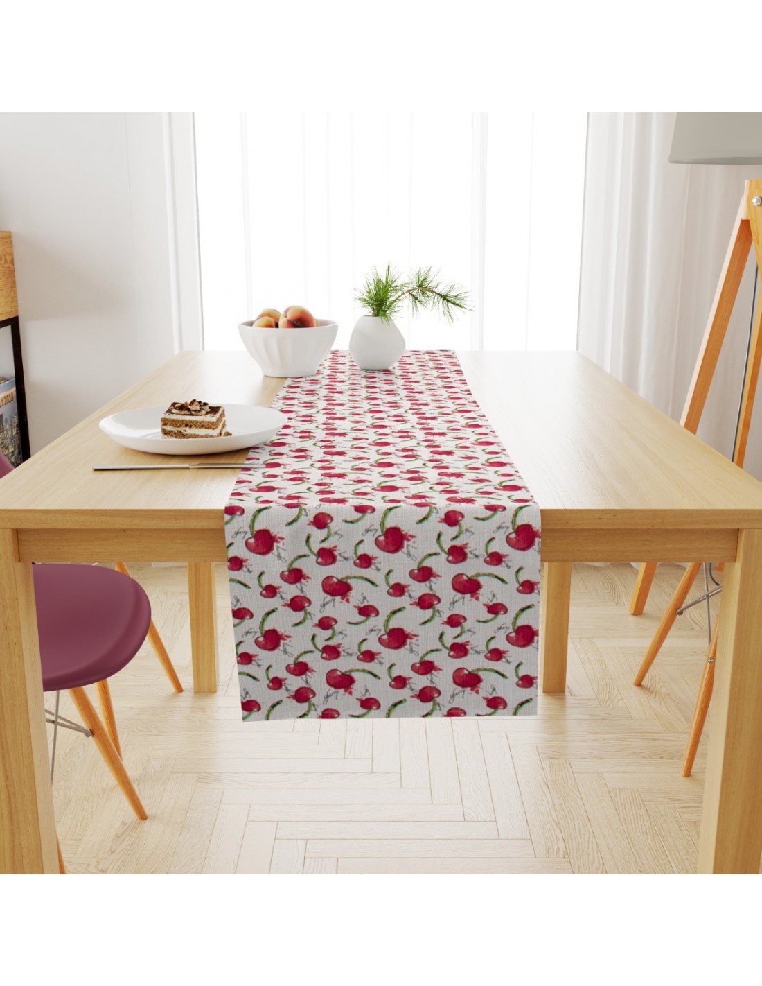 Αλέκιαστη τραβέρσα διάστασης 40x180 ύφανσης PANAMA με ειδικό φινίρισμα στα νήματα, που το καθιστά μαλακό και αδιάβροχο. Απωθεί αποτελεσματικά τους λεκέδες. Τυπωμένο με ανεξίτηλα ανθεκτικά χρώματα. Κατασκευασμένο από 70% βαμβάκι και 30% πολυέστερ.
