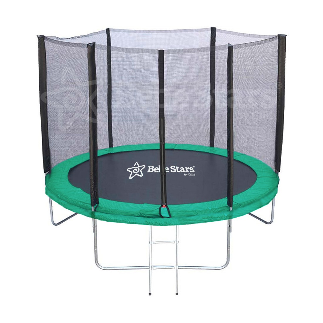 Το τραμπολίνο διαθέτει σκάλα και προστατευτικό δίχτυ, το οποίο εξασφαλίζει την απαιτούμενη ασφάλεια κατά τη χρήση.