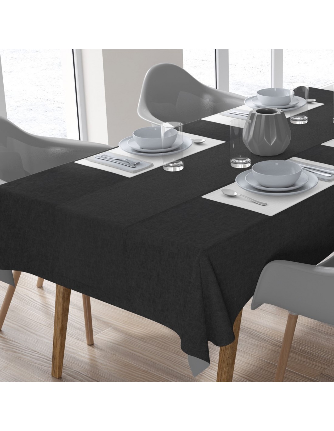 Σετ Τραπεζομάντηλο και Runner Dimcol Panama Μαύρο 140x140 & 40x140