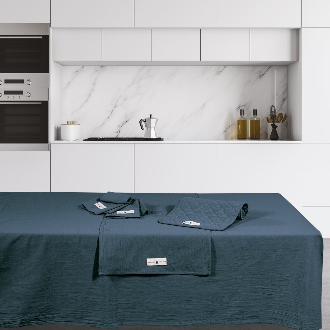 Τραπεζομάντηλο Greenwich Polo Club της σειράς kitchen essential. Είναι 100% βαμβάκι και διατίθεται σε διάσταση 140Χ240εκ. Επιλέξτε για την τραπεζαρία σας Greenwich Polo Club για να απολαύσετε ποιότητα, στυλ και πολυτέλεια.