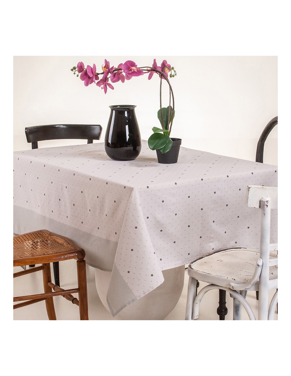 Τραπεζομάντηλο Tiffany με πουά σχέδιο, κατασκευασμένο από λονέτα σύνθεσης 35% βαμβάκι -65% polyester. Η ύφανση του είναι πυκνή και στιβαρή και η αίσθηση του μαλακή. Είναι ιδανικό για καθημερινή χρήση καθώς είναι ανθεκτικό στο χρόνο και τα συχνά πλυσίματα. Διατίθεται σε τρεις διαστάσεις και δυο μοντέρνες αποχρώσεις.