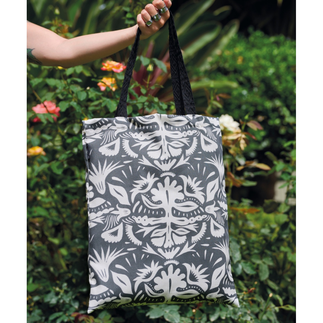 Υφασμάτινη τσάντα (από καμβά panama duck), με περίτεχνα, ζακάρ ανάγλυφα χερούλια. Υπέροχη τόσο για την παραλία όσο και για τις πρωινές μας εξόδους. Ενδείκνυται Πλύσιμο στους 30°C.