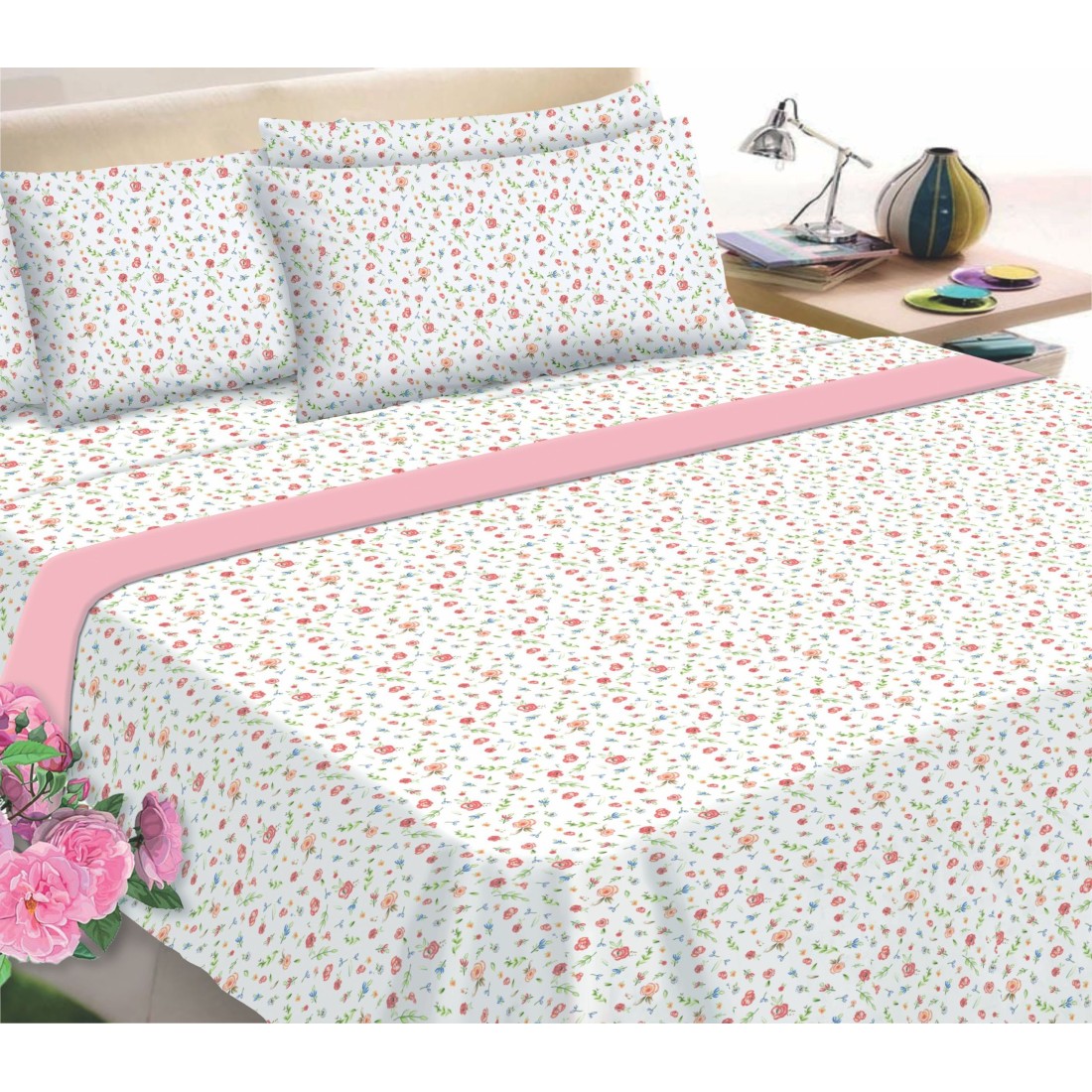 Σετ Σεντόνια Φανελένια Υπέρδιπλα 4 Τεμαχίων ΚΟΜΒΟΣ Little Rose Peach 240x260