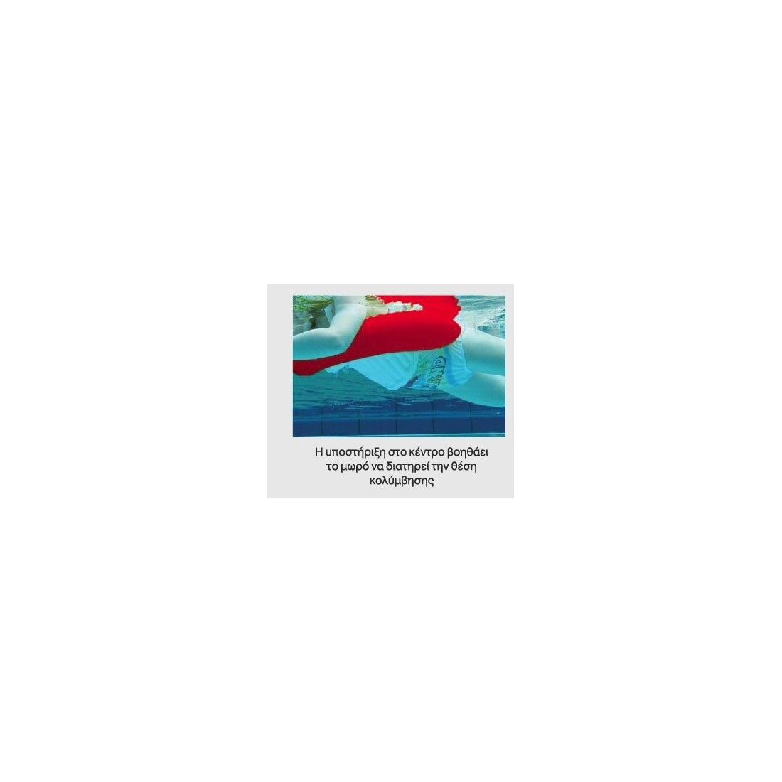 Ιδανική κολυμβητική θέση μέσα στο νερό (το παιδί γέρνει μπροστά με το σωσίβιο του και το σώμα του είναι μέσα στο νερό, αντίθετα με τα κοινά σωσίβια)