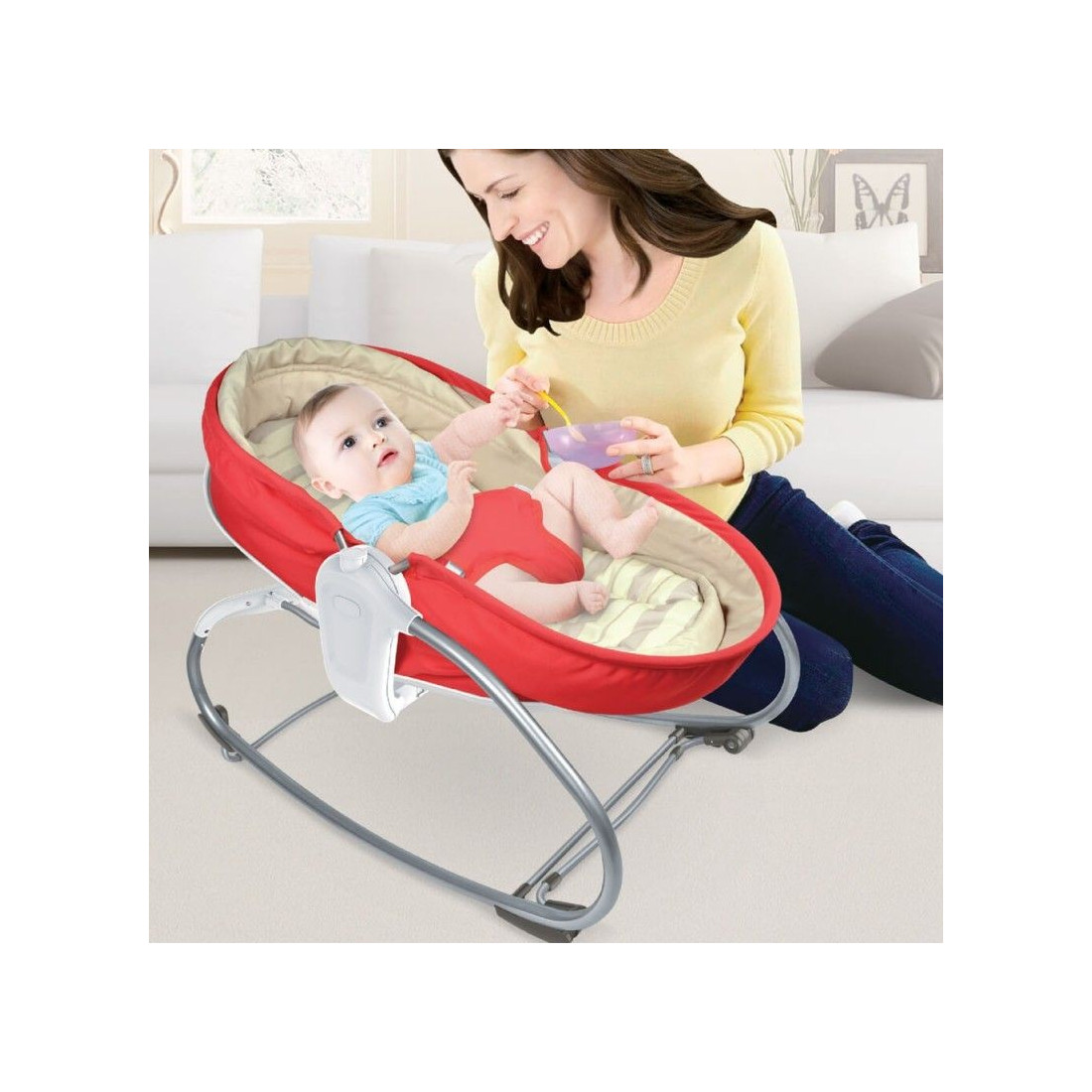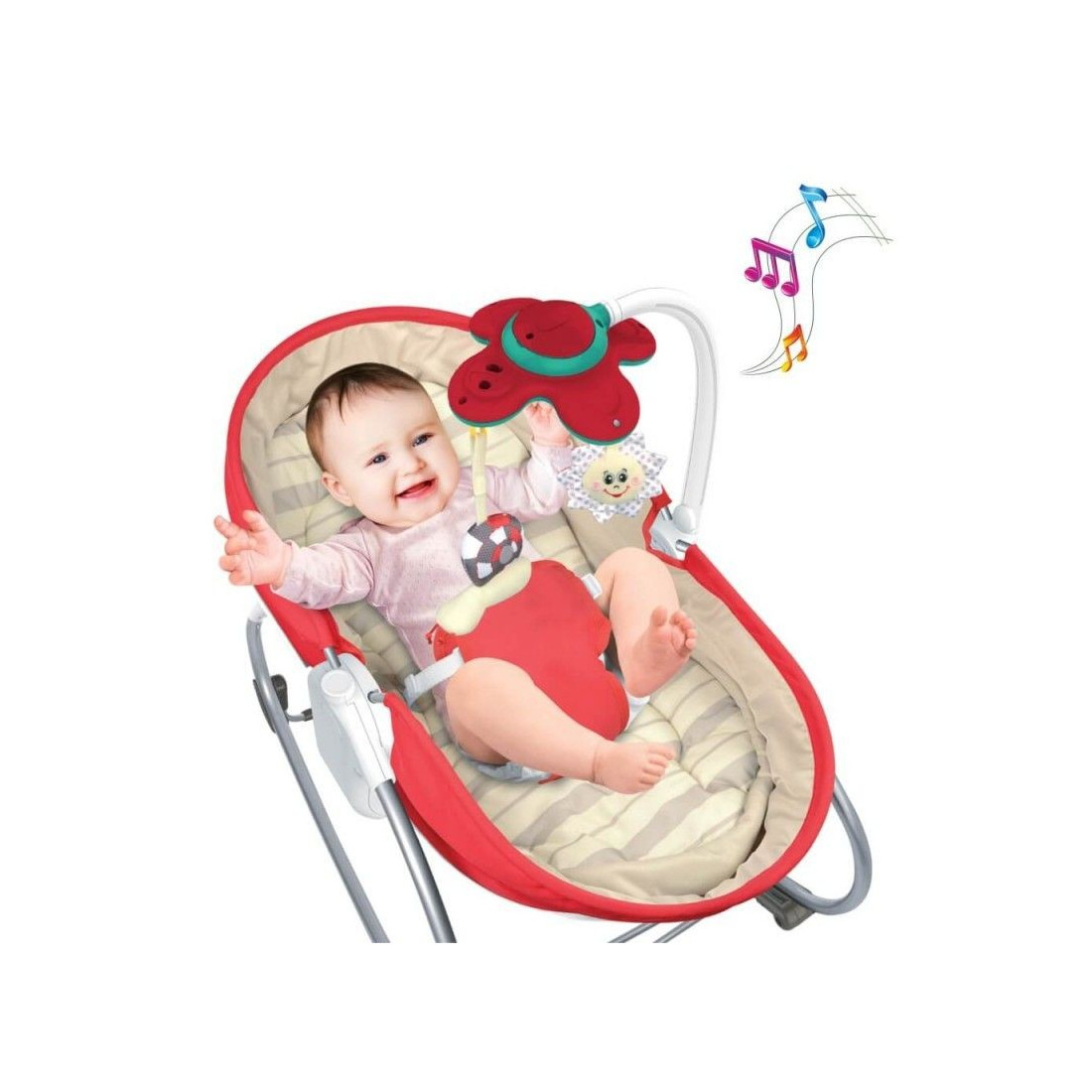 Άνεση και διασκέδαση όλα σε ένα, με το καινούργιο ρηλάξ της Βebe Stars 3 σε 1. Σχεδιασμένο με στυλ στις αποχρώσεις του κόκκινου συνδυασμένο αρμονικά με μπεζ, μετατρέπεται εύκολα από ρηλάξ σε ένα άνετο ‘κρεβατάκι’ για ένα ελαφρύ υπνάκο. Ένα χαριτωμένο μουσικό παιχνίδι διασκεδάζει το μωρό σας ενώ νανουρίζεται, διεγείροντας τις αισθήσεις του. Επίσης ενθαρρύνει τα μωρά να εξασκήσουν τις δεξιότητές τους. Το μαλακό στρωματάκι με τα υπερυψωμένα πλαϊνά του ρηλάξ προσφέρει ένα ασφαλές και άνετο περιβάλλον. Καταπραϋντικές κινήσεις ταλαντεύουν το μωρό σας και στις 3 θέσεις ανάκλισης. – Αφαιρούμενο στρωματάκι με μαλακή υφή. – Ρύθμιση πλάτης σε 3 θέσεις. – Λειτουργία λικνίσματος και κλειδώματος σε σταθερή θέση για χρήση σαν καρεκλάκι. – Αφαιρούμενη μπάρα παιχνιδιών. – Με όμορφες μελωδίες, φως και δόνηση για να ηρεμεί το μωρό σας. – Διακόπτης on-off για μουσική και ρύθμιση έντασης ήχου σε δύο επίπεδα (μπαταρίες 3Χ1,5V αλκαλικές μέγεθος ΑΑΑ, δεν περιλαμβάνονται στην συσκευασία). – Διακόπτης on-off για καταπραϋντική δόνηση, (μπαταριές 1Χ1,5V αλκαλικές μέγεθος C, δεν περιλαμβάνονται στην συσκευασία). – Ζώνη ασφαλείας 3 σημείων. – Διαθέτει αντιολισθητικά άκρα για μέγιστη σταθερότητα. – Αθόρυβη λειτουργία. – Υφάσματα πολυτελείας που αναπνέουν. Ασφαλές και εύκολο στην χρήση για βρέφη 0+ μηνών έως 18 κιλά. Εγκεκριμένο σύμφωνα με τα νέα Ευρωπαϊκά Στάνταρντ Ασφαλείας EN 71