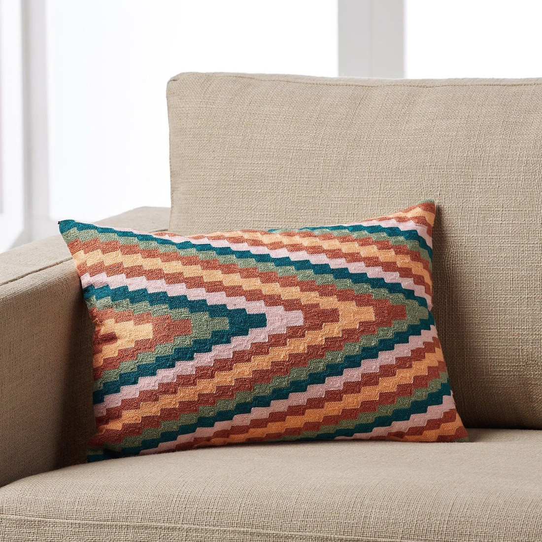 Μαξιλαροθήκη κεντημένη 30x45cm ανάγλυφη. Πίσω όψη από μονόxρωμο ύφασμα.