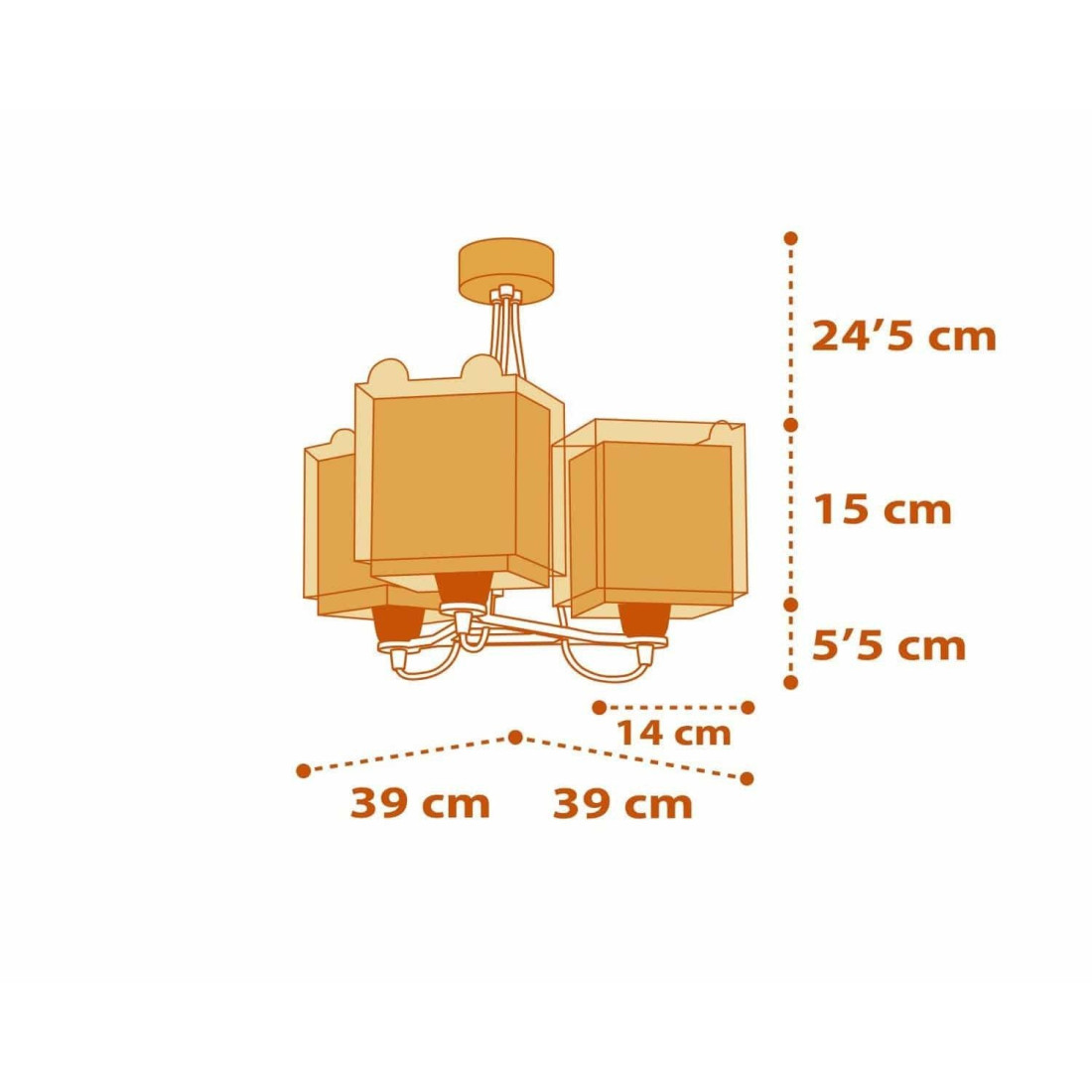 Τριγωνικό φωτιστικό οροφής της εταιρείας Ango σε κίτρινο χρώμα με σχέδιο τιγράκι. Απόλυτα ασφαλές ώστε τα παιδιά να μπορούν να μελετήσουν, να παίξουν και να κοιμηθούν. Τριγωνικής μοντέρνας σχεδίασης κρεμαστό τρίφωτο φωτιστικό. Συνθετικό υλικό αντοχής (πολυπροπυλένιο, συνθετικά και πλαστικά μέρη). Διάφανα καπέλα, διπλού τοιχώματος και ανεξίτηλης εκτύπωσης. Ιδανικό για άπλετο φωτισμό σε όλο το δωμάτιο. Κιτ ανάρτησης ρυθμιζόμενο στο ύψος κατά την εγκατάσταση (συμπεριλαμβάνεται). Διακοσμημένη ροζέτα κάλυψης σημείων σύνδεσης & στήριξης. Διάφανα σημεία στήριξης και κατασκευής ώστε να μην περιορίζεται καθόλου το φως. Τύπος ντουί: 3 Χ E27 με θέσεις για τρεις λαμπτήρες οικονομίας ισχύος έως 23W έκαστος ή Led(δεν συμπεριλαμβάνονται). Τροφοδοσία ρεύματος 220V–240V. Κατασκευασμένο εξ ολοκλήρου στην Ευρώπη. Ασφάλεια με πιστοποιήσεις στους κανόνες ασφαλείας της ΕΕ. Ενεργειακής κλάσης Α++. Το Little Tiger τρίφωτο παιδικό φωτιστικό οροφής συμπληρώνει τα υπόλοιπα φωτιστικά της συλλογής.