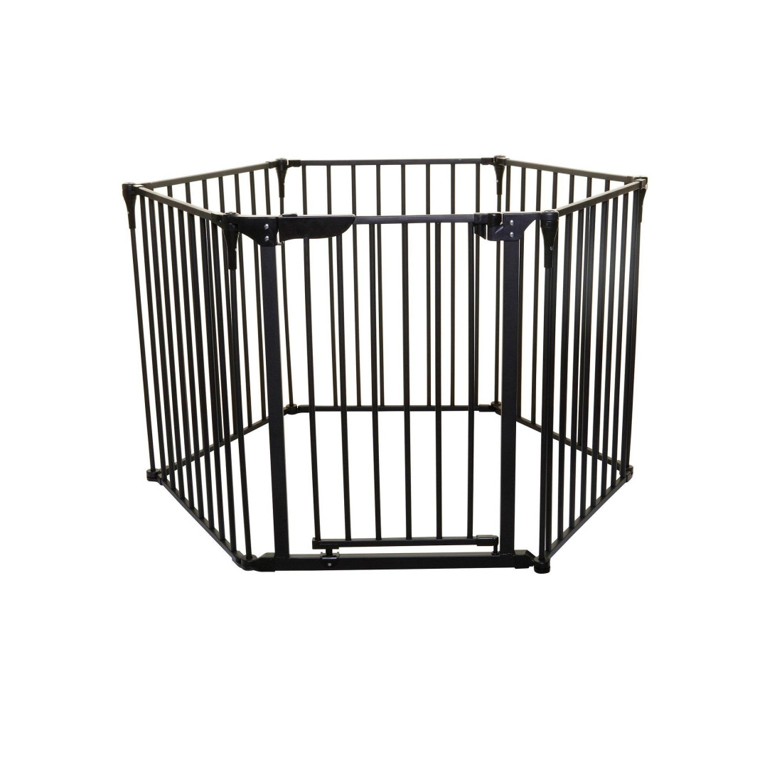 Πόρτα ασφαλείας μετατρέψιμη σε πάρκο Royale 3 in 1 από την εταιρεία Dream Baby για να περιορίσετε το μωρό σας και να εμποδίσετε την πρόσβασή του σε επικίνδυνες περιοχές του σπιτιού όπως είναι το μπάνιο, η κουζίνα και οι σκάλες. Αποτελείται από 6 πάνελ εύκολης ρύθμισης, συνολικού μήκους 380εκ. και ύψους 74εκ., που μπορούν να προσαρμοστούν σε οποιοδήποτε είδος οικιακής διάταξης. Το ένα πάνελ είναι εξοπλισμένο με πόρτα για εύκολη πρόσβαση. Περιλαμβάνονται τα στηρίγματα τοίχου. Τα πάνελ μπορούν να δημιουργήσουν μια πόρτα καλύπτοντας μεγάλο άνοιγμα ή ένα προστατευτικό κάλυμμα γύρω από δωμάτιο, τζάκι και χώρους ακατάλληλους για μικρά παιδιά. Μπορεί να εγκατασταθεί ως ανεξάρτητο πάρκο. Διπλώνει εύκολα και είναι φορητό, με αποτέλεσμα να είναι ιδανικό για ταξίδια και χρήση σε πολλές περιοχές εξωτερικά του σπιτιού. Είναι μεταλλικό σε μαύρο χρώμα και κατασκευασμένα από ανθεκτικά και υψηλής ποιότητας υλικά. Είναι ιδανικό ακόμα και για κατοικίδια. Βάρος πόρτας: 7,9kg. Συμμορφώνεται με το τελευταίο πρότυπο ασφαλείας της ΕΕ 12227.