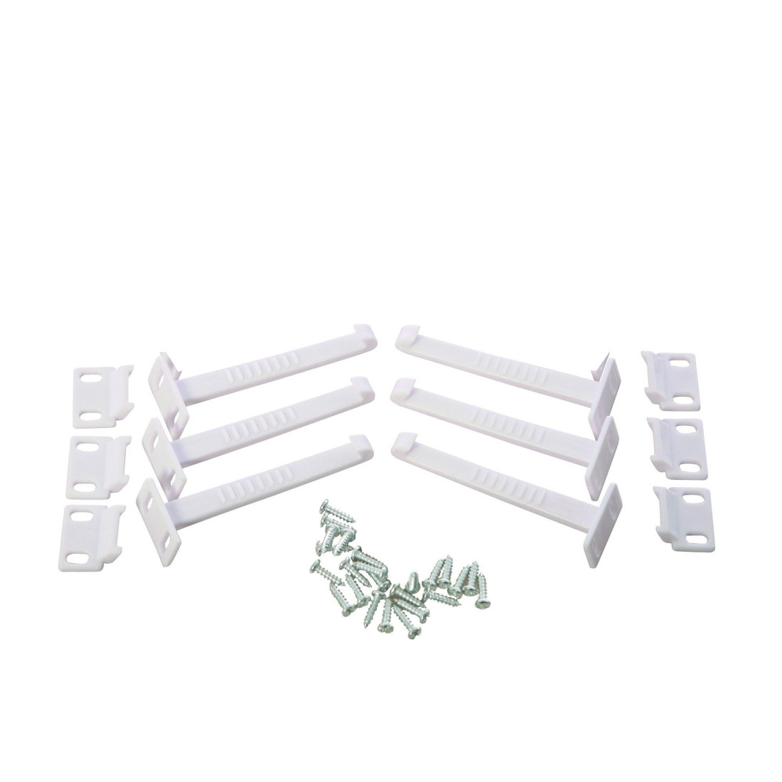 Ασφάλειες ντουλαπιών σετ 6 τεμαχίων από την εταιρεία Dream Baby για την μέγιστη προστασία του μωρού σας. Ιδανικά για την ασφάλιση των περισσότερων ντουλαπιών και συρταριών. Είναι κατάλληλες για τοποθέτηση εσωτερικά στην κορυφή ή την πλευρά του ντουλαπιού. Επιπλέον μπορούν να τοποθετηθούν στο κορυφαίο συρτάρι ή σε ενδιάμεσα συρτάρια που έχουν διαχωριστικά , πάνω στα οποία μπορεί να εφαρμοστεί. Περιλαμβάνονται οι βίδες τοποθέτησης.