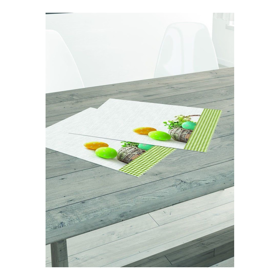 Σουπλά Easter 08 της Saint Clair, διακοσμημένο με αυγουλάκια και ένα πασχαλινό καλάθι.