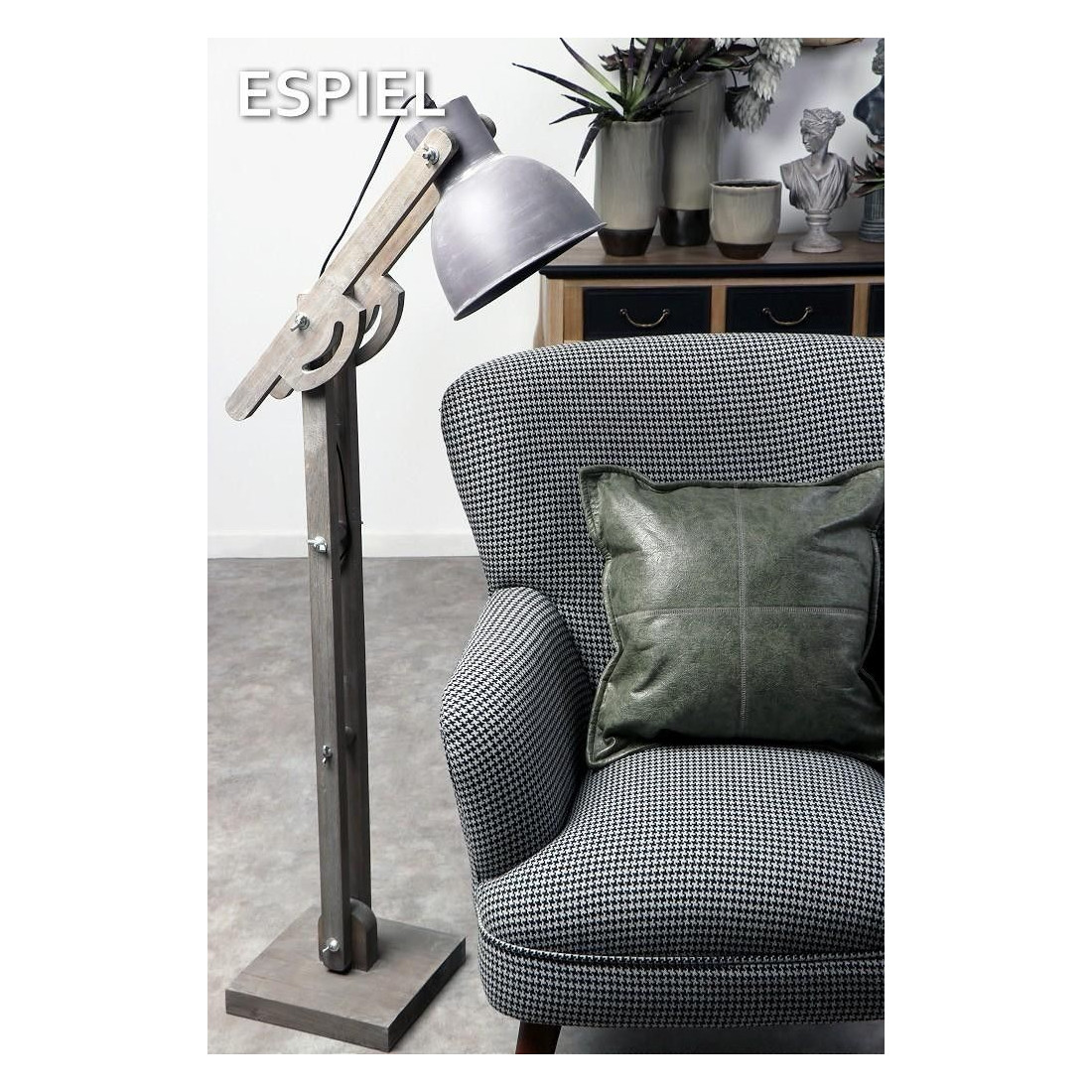 Δώστε μια ξεχωριστή πινελιά στον χώρο σας με τα φωτιστικά της Espiel, που θα γεμίσουν το χώρο σας με φως αλλά και στυλ. Με σύνθεση ξύλινων και μεταλλικών στοιχείων σε βιομηχανικό ύφος, αυτό το φωτιστικό δαπέδου μπορεί να τοποθετηθεί σε οποιοδήποτε δωμάτιο του σπιτιού σας ταιριάζει καλύτερα. Ηλεκτρική Τάση: 220V-240V. Δέχεται 1 λαμπτήρα E27 μέγιστης ισχύος 60Watt (Δεν περιλαμβάνεται).