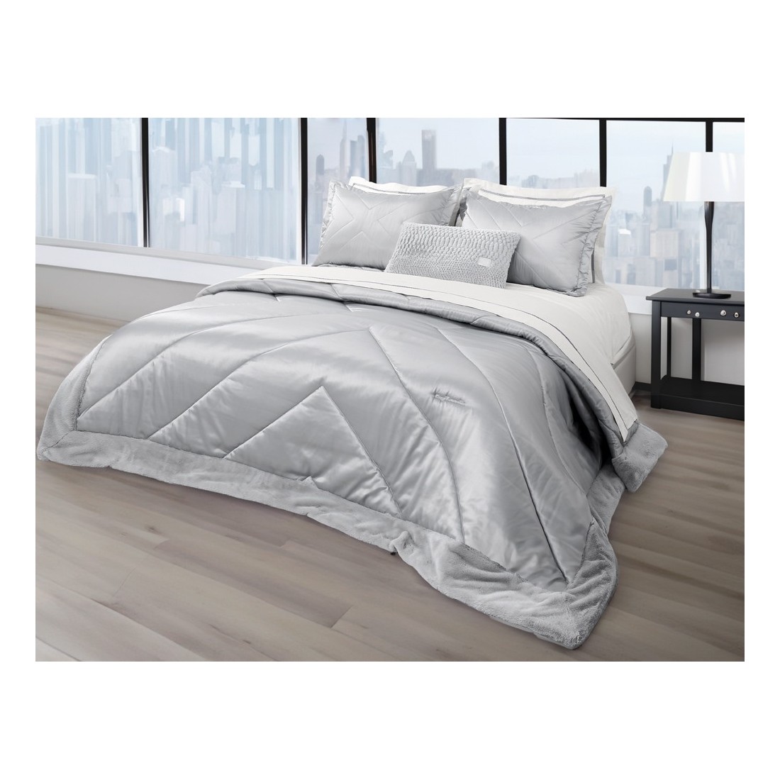 Σετ ελαφρύ πάπλωμα 3 τεμαχίων 100% microsatin με γούνα & καπιτονέ κέντημα.