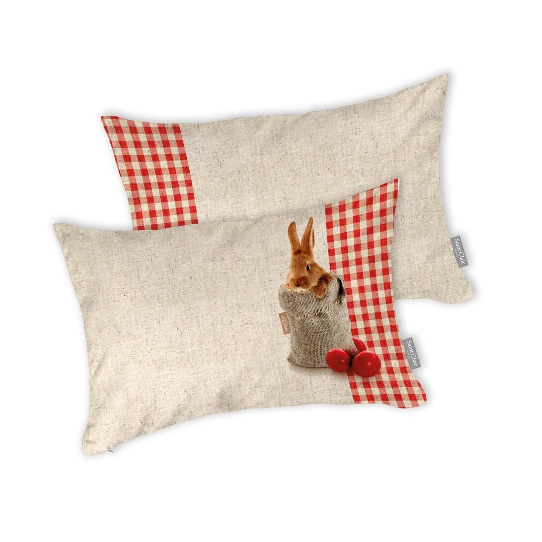 Διακοσμητικό μαξιλαράκι με γέμισμα και πασχαλινή ψηφιακή απεικόνηση.