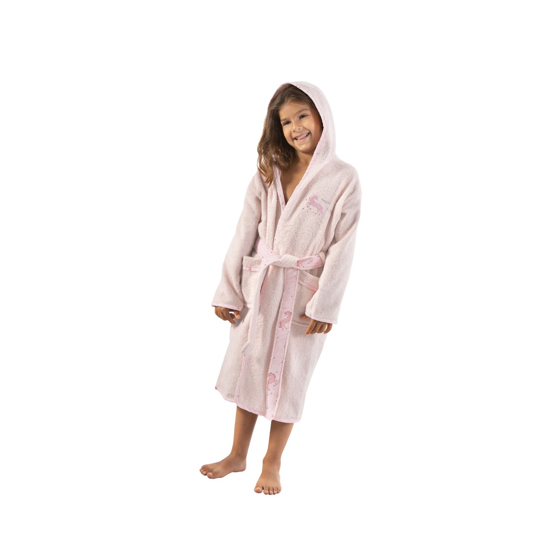 Παιδικό μπουρνούζι κατασκευασμένο από 100% βαμβάκι με την υπογραφή της Saint Clair Paris. Ανακαλύψτε όλη την σειρά \"Pinto Pinky\" και ολοκληρώστε το παιδικό σετ. Ηλικία 2-4 ετών.
