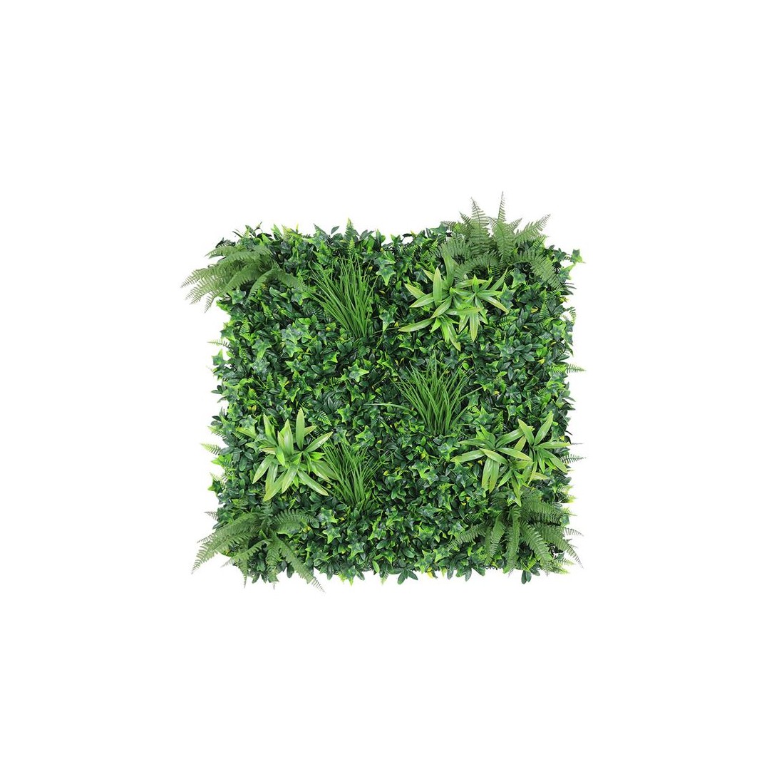 Συνθετικό διακοσμητικό πάνελ με πυκνή φυλλωσιά, σε πλακίδιο 1m x 1m. Έχει τρισδιάστατη όψη και δίνει μια αίσθηση ζωντάνιας και φυσικότητας στον χώρο σας. Διακοσμήστε τον εξωτερικό ή εσωτερικό χώρο σας με τα πάνελ φυλλωσιάς και δημιουργήστε έναν μοναδικό κάθετο κήπο.