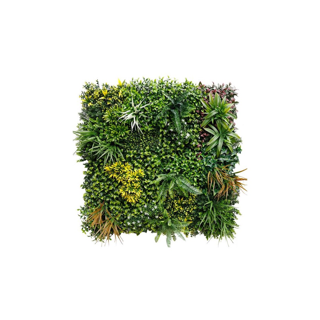 Συνθετικό διακοσμητικό πάνελ με πυκνή φυλλωσιά, σε πλακίδιο 1m x 1m. Έχει τρισδιάστατη όψη και δίνει μια αίσθηση ζωντάνιας και φυσικότητας στον χώρο σας. Διακοσμήστε τον εξωτερικό ή εσωτερικό χώρο σας με τα πάνελ φυλλωσιάς και δημιουργήστε έναν μοναδικό κάθετο κήπο.