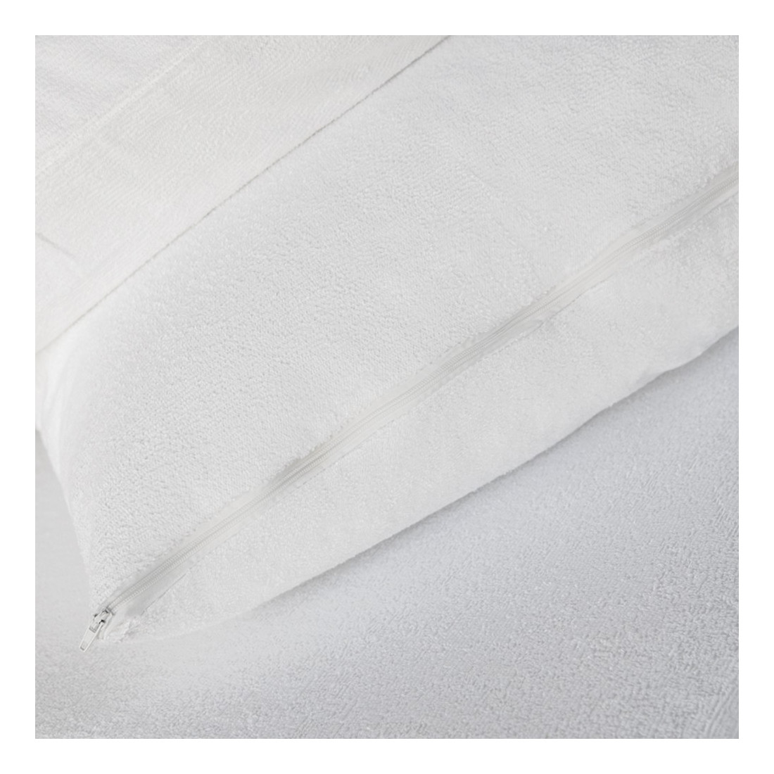 Προστατευτικές μαξιλαροθήκες με αδιάβροχη μεμβράνη πολυουρεθάνης PU εσωτερικά. προσφέρουν αδιάβροχη προστασία στα μαξιλάρια σας. Είναι υποαλλεργικές. αντιβακτηριδιακές και εξαιρετικά απορροφητικές. Εξωτερικά αποτελούνται από πετσετέ ύφασμα σύνθεσης 40% βαμβάκι-60% polyester. Κλείνει με φερμουάρ για σταθερή εφαρμογή.