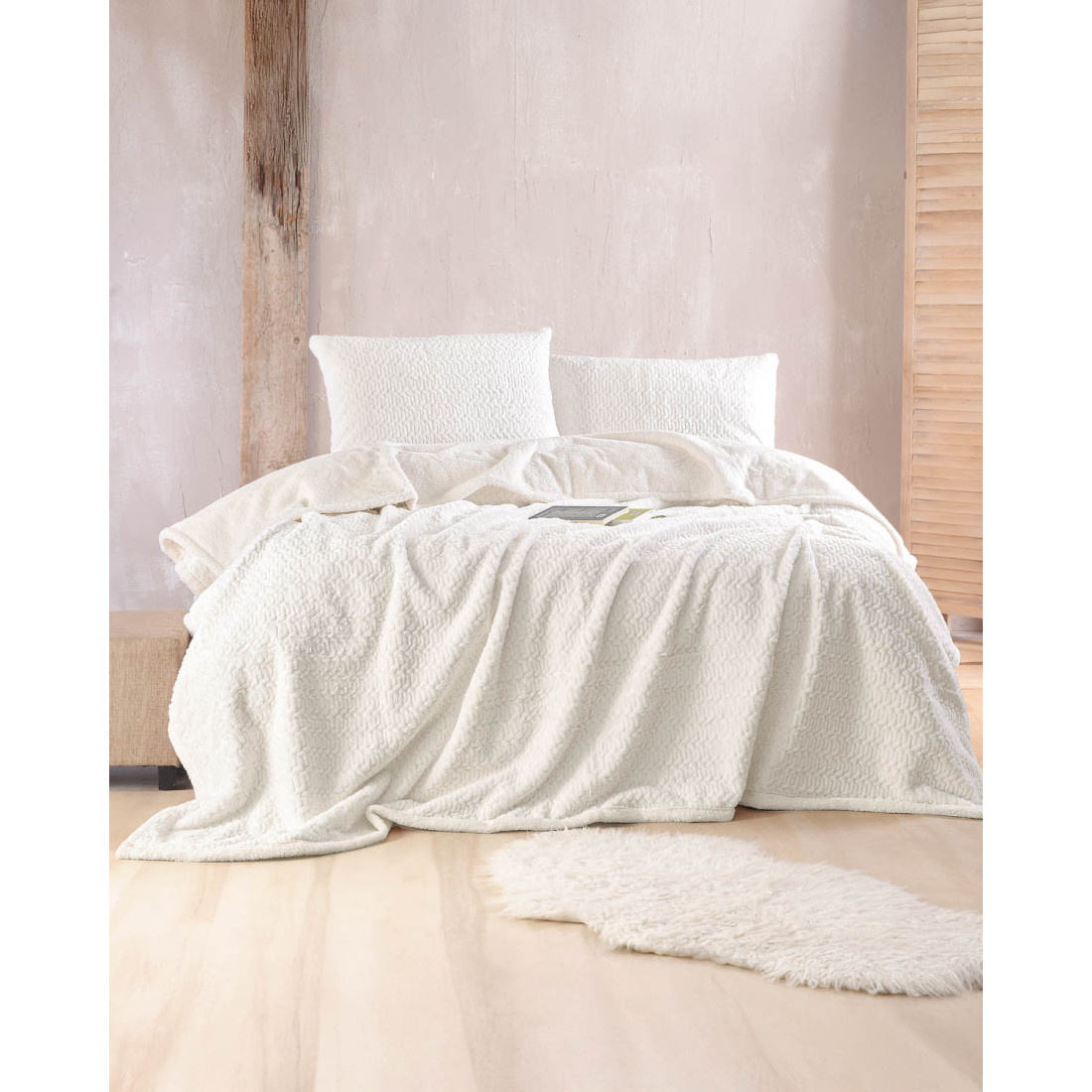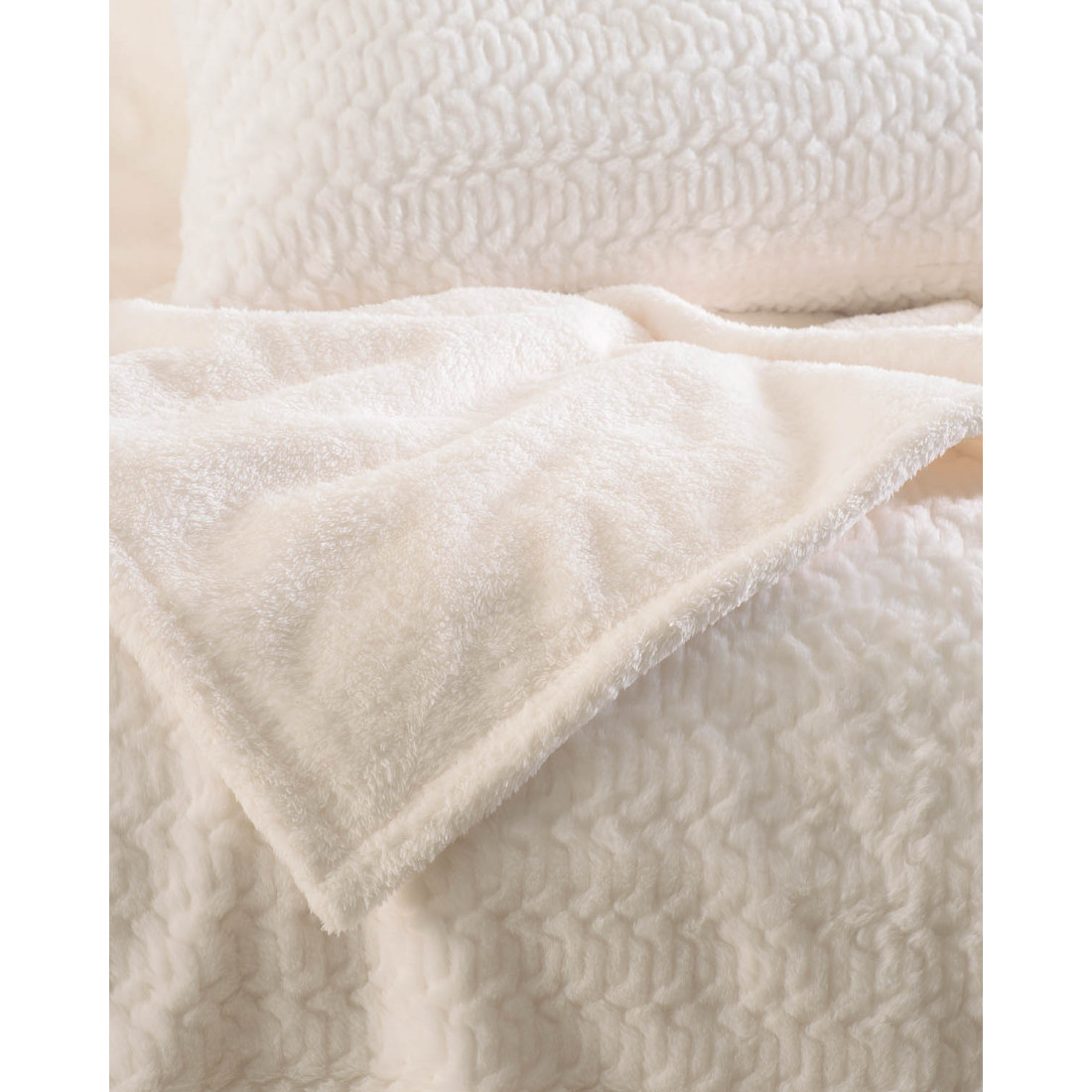 Κουβέρτα γούνινη υπέρδιπλης διάστασης 220Χ240 μαζί με 2 μαξιλαροθήκες ιδίου χρώματος και σχεδίου διάστασης 50Χ70. Το σετ αυτό που διατίθεται σε λευκό χρώμα είναι εξαιρετικά απαλό και ζεστό όσο και ένα κουβερτοπάπλωμα και θα δώσει ένα τόνο κομψότητας και πολυτέλειας στο χώρο σας. ΑΝΩ ΟΨΗ: Jacquard Rabbit Eco Fur ΚΑΤΩ ΟΨΗ:Flannel Fleece Ιδίου Χρώματος Bάρος: 750gr/m2