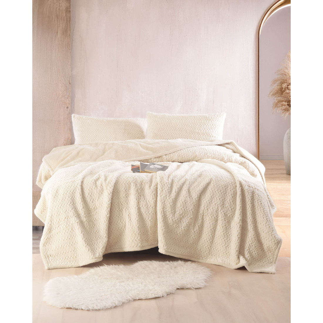 Κουβέρτα γούνινη υπέρδιπλης διάστασης 220Χ240 μαζί με 2 μαξιλαροθήκες ιδίου χρώματος και σχεδίου διάστασης 50Χ70. Το σετ αυτό που διατίθεται σε μπεζ χρώμα είναι εξαιρετικά απαλό και ζεστό όσο και ένα κουβερτοπάπλωμα και θα δώσει ένα τόνο κομψότητας και πολυτέλειας στο χώρο σας. ΑΝΩ ΟΨΗ: Jacquard Rabbit Eco Fur ΚΑΤΩ ΟΨΗ:Flannel Fleece Ιδίου Χρώματος Bάρος: 750gr/m2
